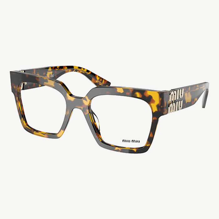 Pensée comme un véritable accessoire de style, cette monture se distingue par ses volumes maîtrisés et ses branches épaisses, signature emblématique des créations Miu Miu. Le logo apposé sur les branches agit comme un bijou graphique, soulignant l’ADN couture du modèle sans compromis sur l’élégance.