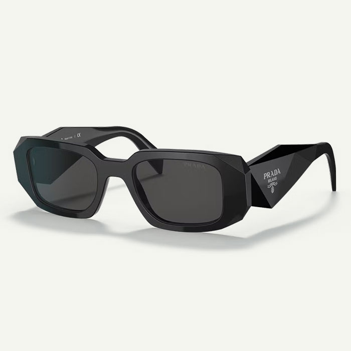 La monture, taillée comme une pièce architecturale, associe reliefs géométriques, lignes nettes et branches épaisses signature. Ce travail de matière, propre à Prada, renforce la dimension mode du modèle et lui confère une allure avant-gardiste incomparable.